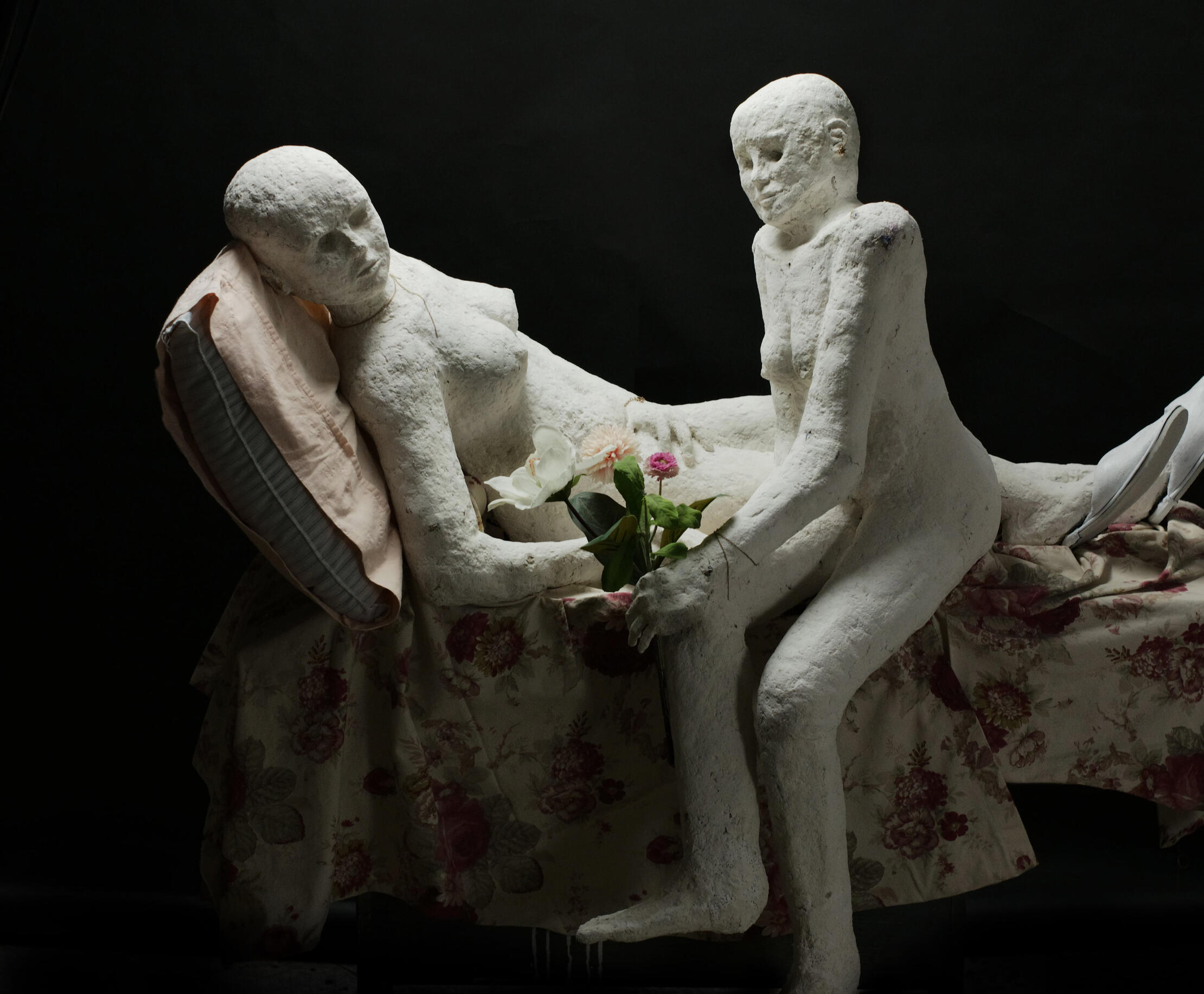 acrylic paint on canvas, wire, wire mesh, plaster mold, fabric, paper-mache